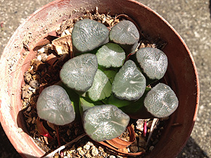 直射日光よりも少し陰るくらいのほうがきれいに育ちます。葉の先端は多少の凸凹はあってもほぼ平ら。名前の通りに象の足のようです。